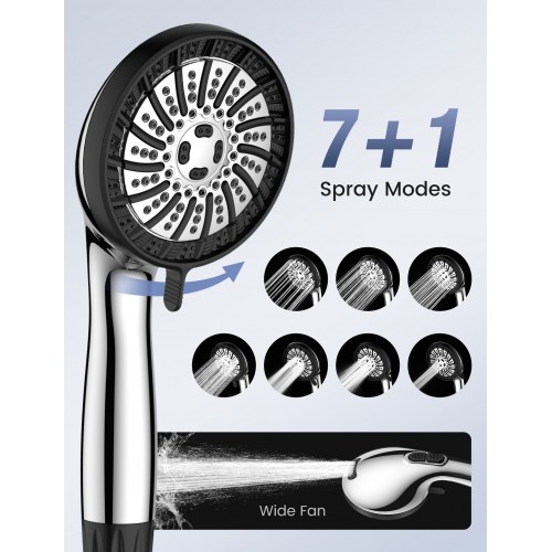 7+1 Spray Modes Shower Filter: Personalise your experience with 7 unique settings. Enjoy a gentle Rain mode for relaxation, a soft Mist for kids or sensitive skin, and a Massage mode with pulsating flow to soothe tired muscles. Need a quick rinse? Switch to Jet for a concentrated stream, or activate Turbo for a high-pressure boost. The Wide Spray mode delivers full-body coverage for a faster, more efficient wash. Whatever the moment, there's a spray setting to match