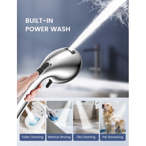 No Tool Required & Easy Installation: The package includes 1 x handheld shower head, 1 x 1.5m stainless steel hose, 1 x teflon tape, 2 x extra washers, 1 x instruction manual. The 1.5m hose with universal G1/2" thread connects effortlessly to any shower, no tools required
