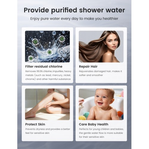 Advanced 15-Stage Shower Head Filter: Our handheld shower head features a 15-stage filtration system, composed of over 12 filter media including KDF, calcium sulfite, activated carbon, vitamin C, and ceramic balls. It effectively removes up to 99% of chlorine and heavy metals—helping to soothe dry, itchy skin while leaving hair softer and skin smoother. Designed to gently care for the whole family, including those with sensitive skin. Each filter cartridge lasts up to 3–6 months and requires no tools to replace—simply twist and it's done
